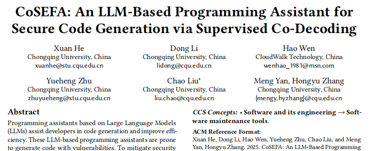 近日,云從科技與重慶大學大數據與軟件學院聯合研發(fā)的編程智能體——CoSEFA(Code SEcurity and Fix Agent)被軟件工程領域頂尖會議ACM SIGSOFT軟件工程基礎國際會議(FSE 2025)正式錄用。