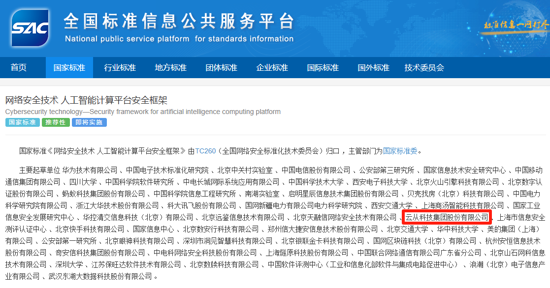 近日,國家標準GB/T 45958-2025《網絡安全技術 人工智能計算平臺安全框架》正式發(fā)布。該標準由全國網絡安全標準化技術委員會歸口管理,華為技術有限公司牽頭,云從科技作為核心起草單位之一,深度參與了標準制定工作。 這項將于2026年2月1日正式實施的國家標準,為人工智能計算平臺建立了系統化的安全框架,規(guī)定了安全功能、安全管理和角色安全職責,將有效應對硬件漏洞、訓練數據泄露、對抗樣本攻擊等新型安全威脅。